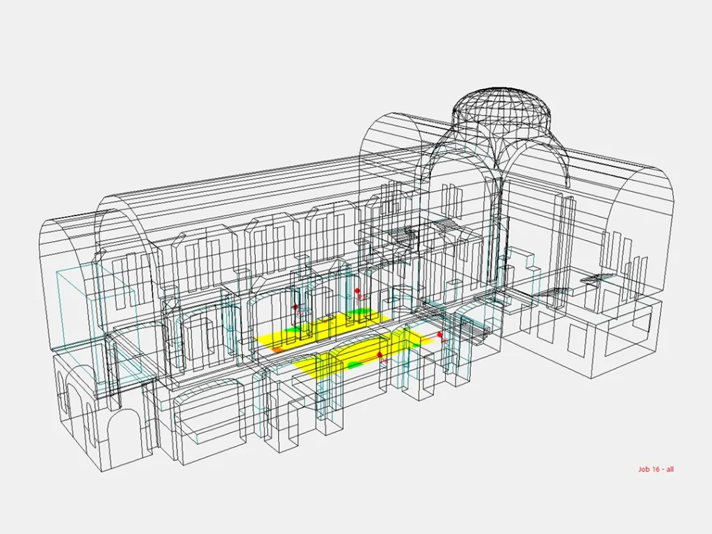 La acústica del Santuario es apropiada para la música de órgano, pero poco apropiada para una buena inteligibilidad de la palabra hablada. El tiempo de reverberación en frecuencias medias es de casi 6 segundos. Sin posibilidades de modificar acústica natural del templo debido a consideraciones estéticas, Patagon Acoustics trabajó en mejorar el sistema de refuerzo sonoro. Las autoridades del Santuario pudieron evaluar las distintas configuraciones del sistema de sonido propuesto por Patagon Acoustics, por medio de auralizaciones en nuestro laboratorio AmbiNEAS.